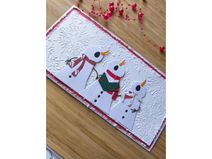 Ručně vyrobená dárková obálka s kapsou a zimním motivem tří sněhuláků. Ideální na peníze, poukaz nebo drobný vzkaz. Originální a hravý doplněk k vašemu dárku.