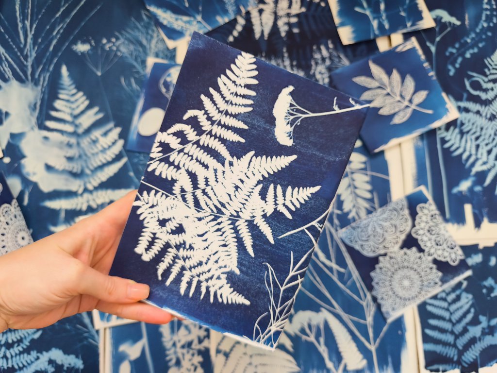 - Seznámíte se s technikou kyanotypie (také nazývaná jako modrotisk) a zjistíte, na jaké materiály ji lze aplikovat