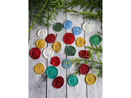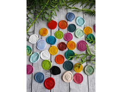 Ručně vyráběné voskové pečetě v různých barvách a motivech. Každý kus je originál s jemně nepravidelným tvarem. Ideální pro dekoraci obálek, přání či dárků.