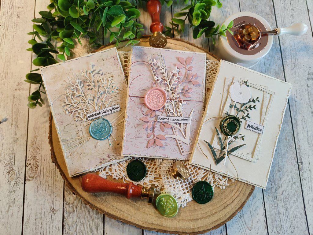 vyrobíte si visačky, 3 originální přáníčka a sadu pečetí pro další použití
